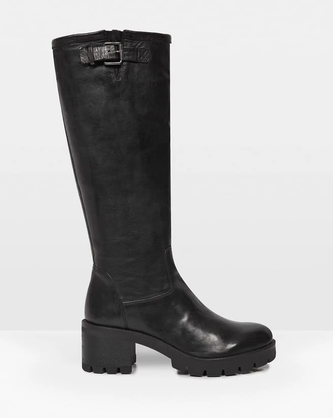 Lend a touch of edge to your look without compromising a jot on comfort. Our biker knee boot is a fresh option for the coming season, crafted in rich leather with a classic silhouette that goes with all your favourite looks.