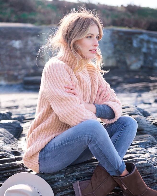 Borrow from the boys with our chunky fisherman’s rib sweater. The menswear classic gets a feminine overhaul thanks to a 100% lambswool knit for strokable softness. A marled, slightly textured effect lends further depth to this piece, while a laid-back cut and grown-on turtleneck make it ideal for layering in frosty snaps.