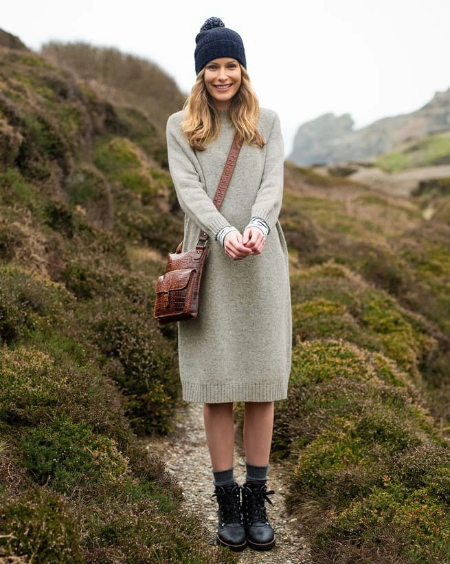 Using a cleaner, more compact Donegal-style yarn, we decided to bring this dress back for another season.