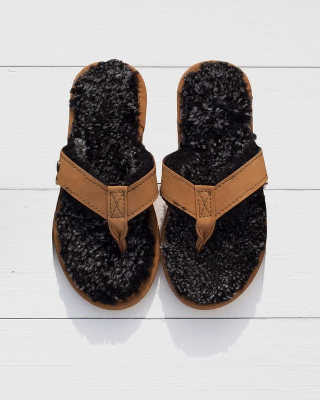 Treat your feet to the softness of pure shearling, with our ultra-comfy flip-flops. With a nubuck leather upper, shearling footbed and durable rubber soles.