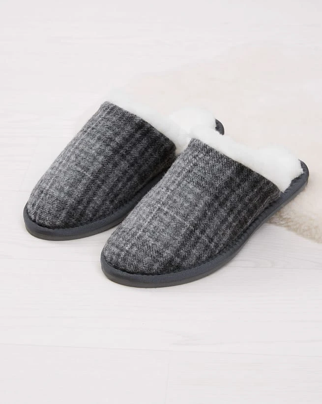 This new addition to our collection of turnback mules features our signature tartan and has a brushed finish for next-level fluffiness!