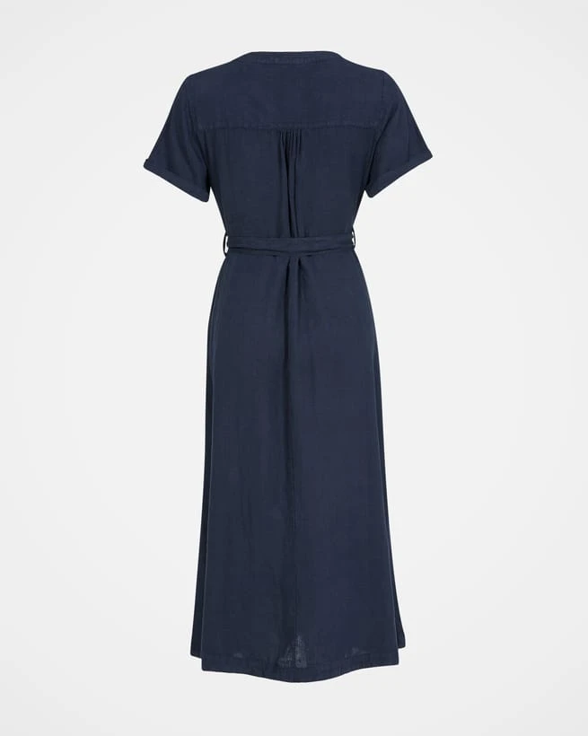 This button through midi dress is light, airy and breathable, making it great for summer. A D-ring belt at the waist allows the dress to be adjusted to create your desired fit. Featuring a single chest pocket and two to the hip, turn back cuffs on the sleeves, a crew neckline and Corozo buttons. It has been washed to give a tumbled, soft appearance, and it’s pull-on style makes it an effortless, classic garment.