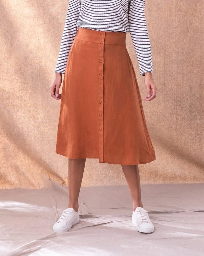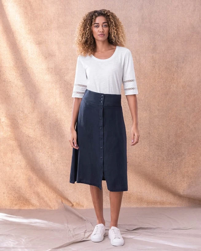 We designed this beautiful skirt to co-ord with our Linen Sleeveless Top or our Linen Button Back Blouse.