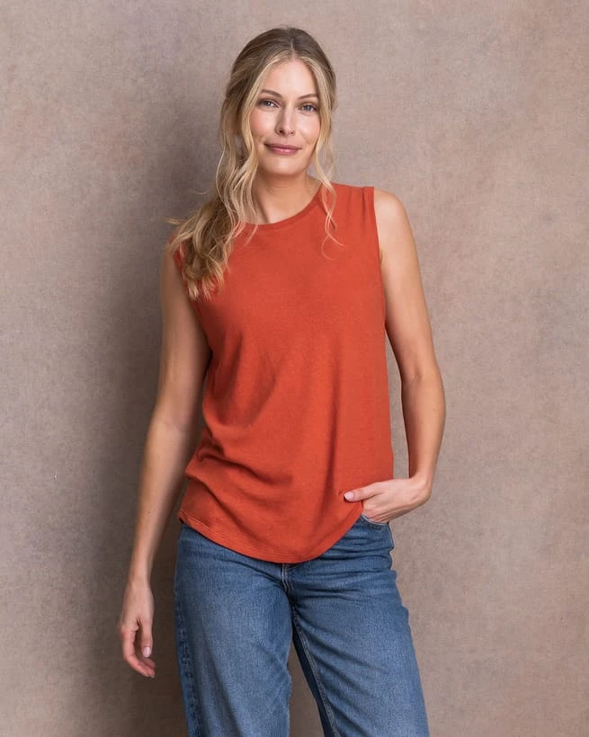 A wardrobe essential, our Linen Cotton Tank Top is made in our classic linen and organic cotton blend jersey, which features a beautiful light textured slub to the fabric. It combines classic tank styling with a slimmer fit and a crew neckline. Made to be pulled on for any occasion, this relaxed, breathable, cool top can be worn day to day, and is guaranteed to become a beautiful basic in your closet.