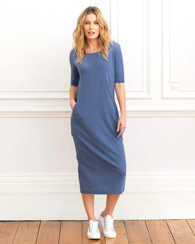 Designed to slip on effortlessly with a flattering fit that feels custom made, this short-sleeved dress is crafted in linen blended with cotton for an airy, lightweight feel that’s perfect on warmer days.