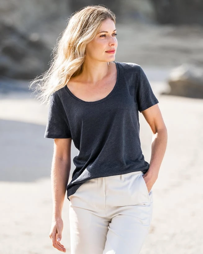 Our versatile scoop-neck, curved-hem T-shirt has been crafted in 100% linen marked with a Masters of Linen accreditation and sourced from a nearby supplier to reduce emissions.