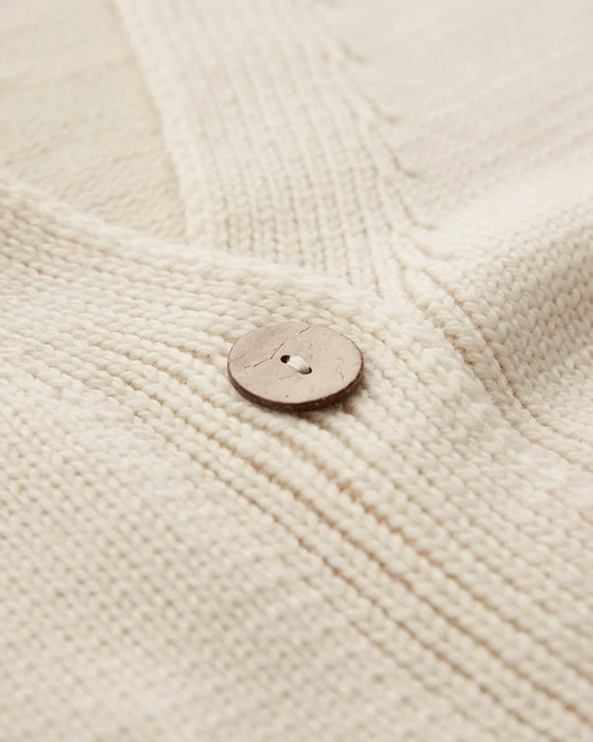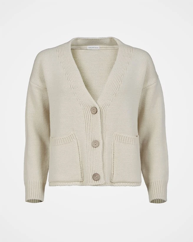 Dropped shoulders and a boxy fit makes this cardigan appear understated, whilst tying any outfit together. Featuring patch pockets, a deep v-neckline and coconut button fastenings, this soft staple looks great with jeans and dresses alike. The super soft wool blend feels beautiful against your skin, and this timeless knit can be worn year round.