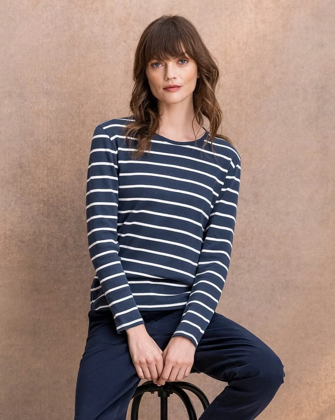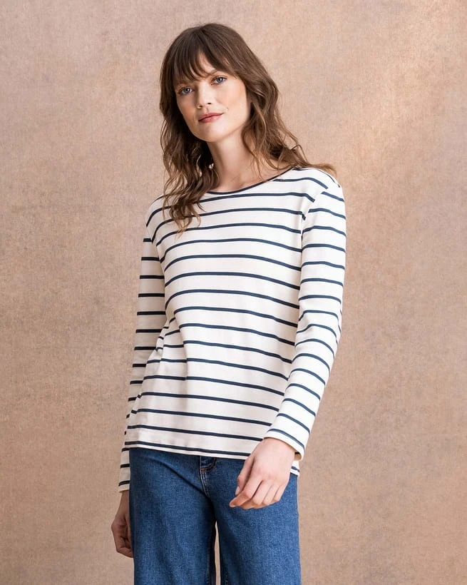 A winter-weight take on the must-have Breton jersey, created in skin-kind, planet-friendly organic cotton. This long-sleeved style teams a narrow stripe with acrew neckline for bold impact. It’s a failsafe partner to mid-blue denim, but looks equally stylish tucked into a tube skirt or wide-leg pants.