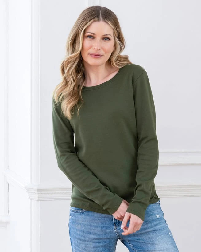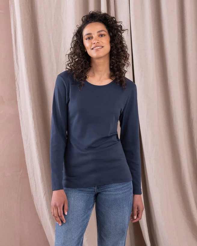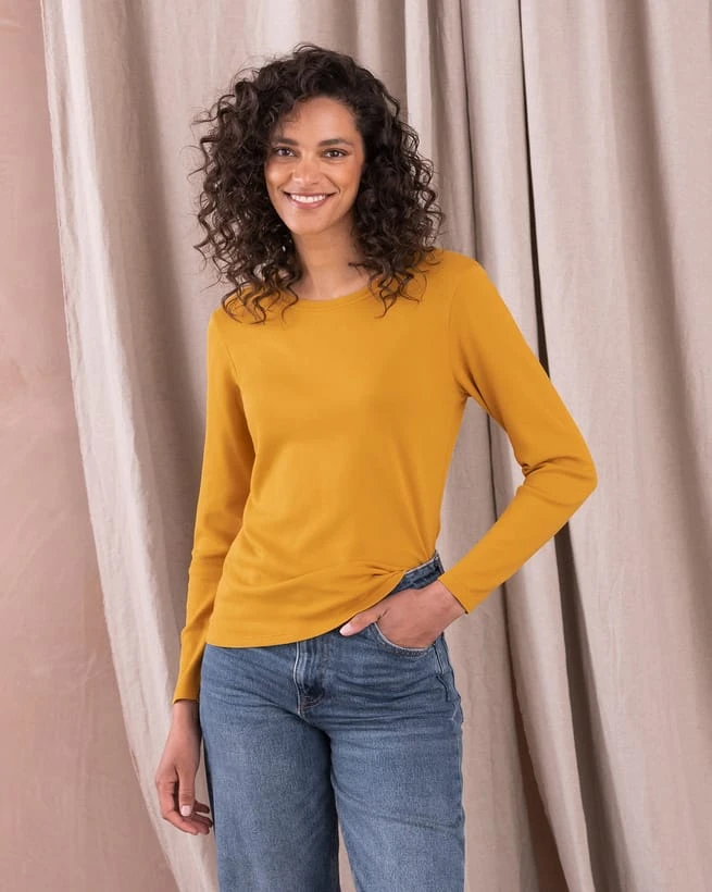 Crafted in the plushest jersey you can imagine, this long-sleeved T-shirt is the answer to all your layering prayers. We’ve chosen organic cotton for its superior softness, resilience and eco-friendliness, and it doesn’t disappoint. The crew neckline makes this staple piece easy to pair with jumpers, shirts and cardigans alike – reach for it anytime you need extra warmth and comfort.