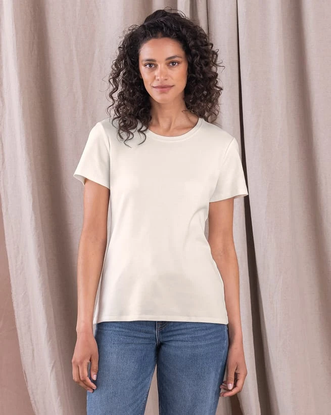 Slim fitting and short sleeved, this is a classic T-shirt shape with a crew neck made in our high quality interlock organic cotton jersey. Incredibly soft on skin, this breathable layer is great for wearing alone or under your favourite jumper. Designed to be a beautiful basic, wear it everyday, all year round.