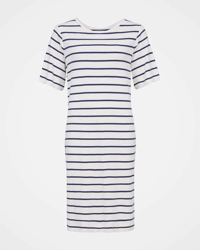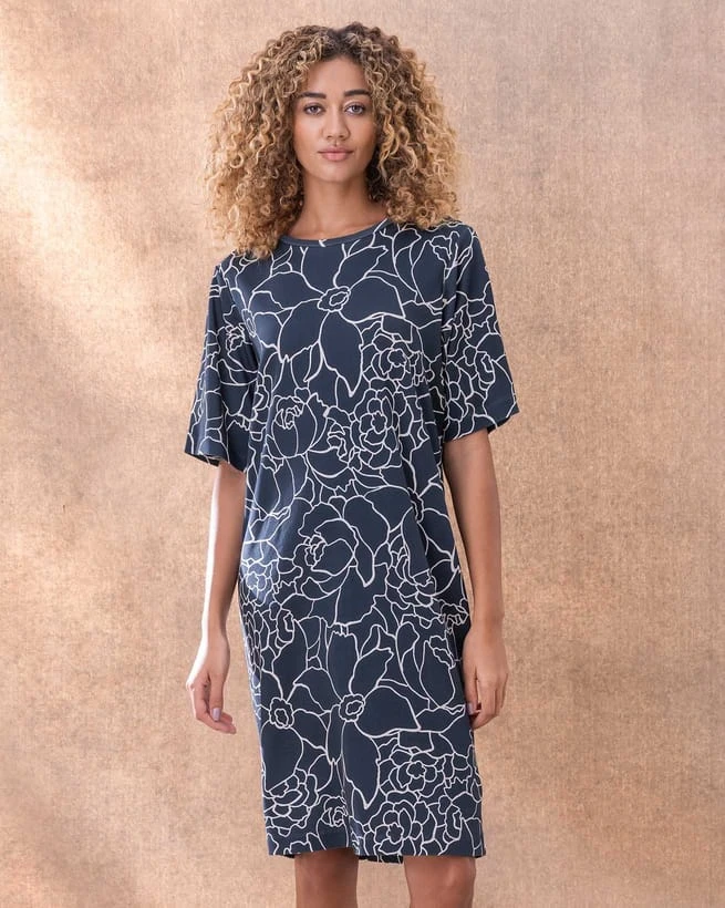 This knee length, straight fit t-shirt dress is easy to wear, effortless to style and extremely comfortable. The half length, flared sleeves are very flattering and add extra coverage. Featuring a crew neckline and side pockets, this dress was designed to be lived in. Wear with sneakers in town and bare feet at the beach.