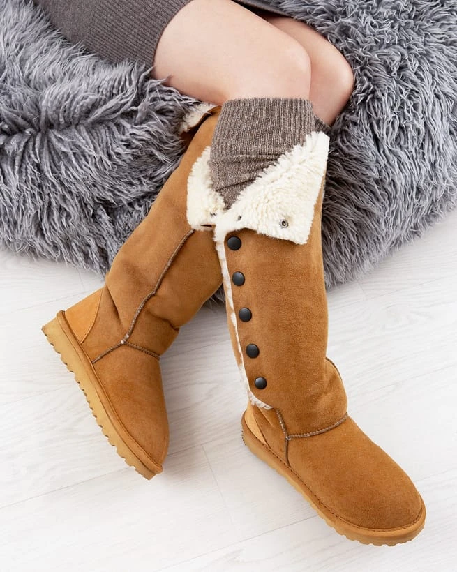 Injecting a little extra attitude into a long-standing favourite, our popper boots offer two chic looks in one super-cosy package. Hand crafted in Cornwall from 100% British shearling with double-stitched construction, these boots can be ordered in a calf or knee length.