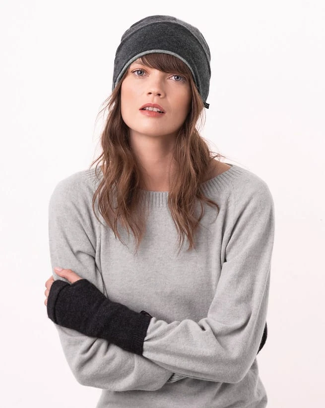 The recycled nature of the cashmere means that every pair is unique; due to the upcycled fabric process of each item, the product can vary in colour from the accompanying imagery.
