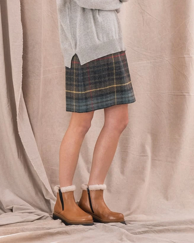 This chunky Chelsea boot is a modern take on the classic style, featuring a statement cleated sole with deep leather welt. An angled elasticated panel has been added to the outer side, whilst a chunky zip on the inner side allows you to slip your boots on and off with ease. The rich vegetable tanned leather upper is complimented by a real sheepskin cuff trim and cosy wool fleece lining.