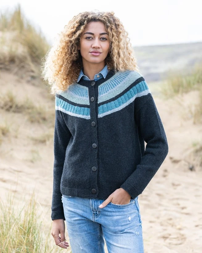 We’ve borrowed the statement stitch detail from our best-selling Donegal sweater and added it to the yoke of this cardigan, trimming it with natural corozo-nut buttons and finishing it with ribbed accents for an easy layer that goes with everything. In fact, we pretty much guarantee you’ll be living in it this season.