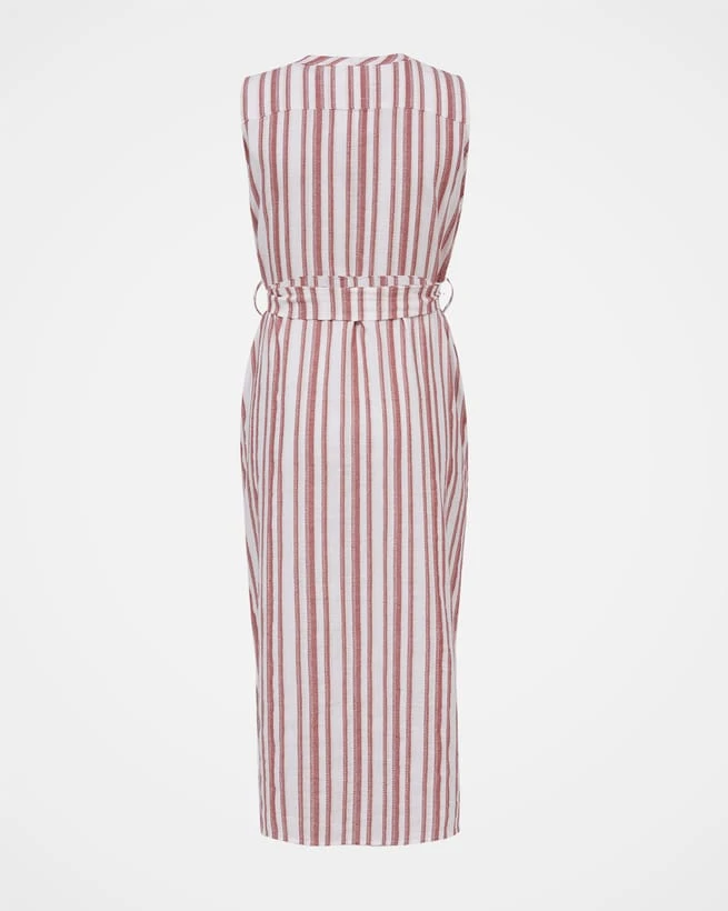 Made in a textured cotton stripe, this classic midi dress is airy, breathable and perfect for summer. A versatile staple, it can be worn loose for a relaxed silhouette or tied at the waist for a cinched in look. Featuring a v-neckline, buttons through the bodice, side pockets and a cutabout stripe detail on the yoke.