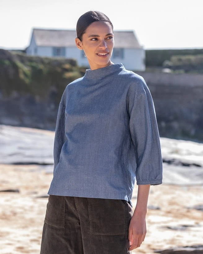 Created in a twill weave from a mixture of cotton, lyocell and linen. This results in a denim look with a lovely drape and soft handle due to the lyocell. The yarn is spun in France, woven in Spain and the final garment is made in Portugal.
