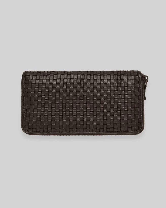 Boasting plenty of interior pockets to keep you organised, it’s made with panels of woven leather that have been hand-burnished for a premium finish. A zip closure keeps your cards and cash safely tucked away, and a cotton lining adds the finishing touch.